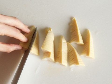 たけのこ上部を縦半分に切り そこから3 4等分にします たけのこのくし切は 若竹煮や土佐煮の調理の時に使うのがおすすめですよ たけのこの煮物 おすすめの切り方は. 太い部分の切り方 1 水洗いし 根元のかたい部分は切り落とし 穂先は斜めに切り落とす 2 皮にタテ1本 まっすぐに切り込みを入れる 3 鍋にたけのこを入れ かぶるぐらいの水 米ぬかを入れて強火にかける.